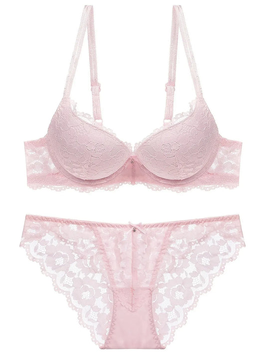 1 Set Elegant Lace Embroidery Breathable Fabric Lingerie Set Push-Up Bra Drop Waist Sheer Panty - Ultimate Valentine's Day