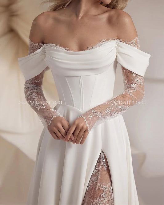 Mordern Off Shoulder Wedding Dresses A-Line Bridal Gown For Wedding Customized Bride Dresses vestidos de novia robe de mariée