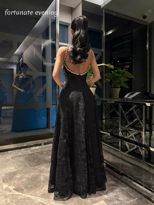 Fortunate Evening Elegant Vintage Sexy Black Lace Crystal Backless Customized Formal Occasion Prom Dress Evening Party Gowns