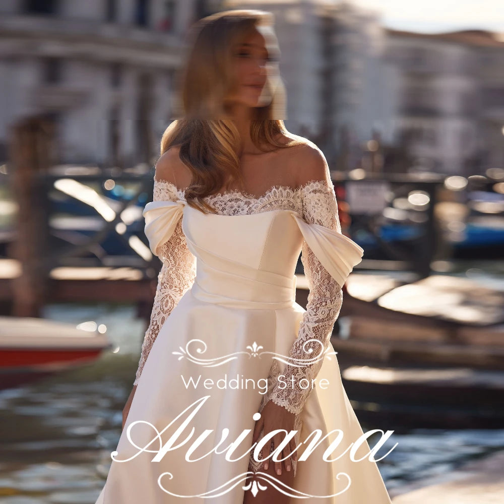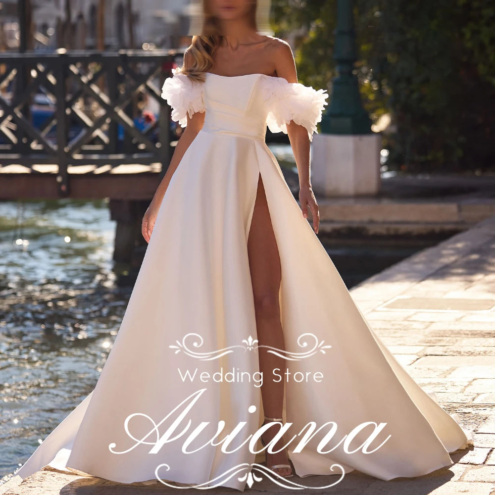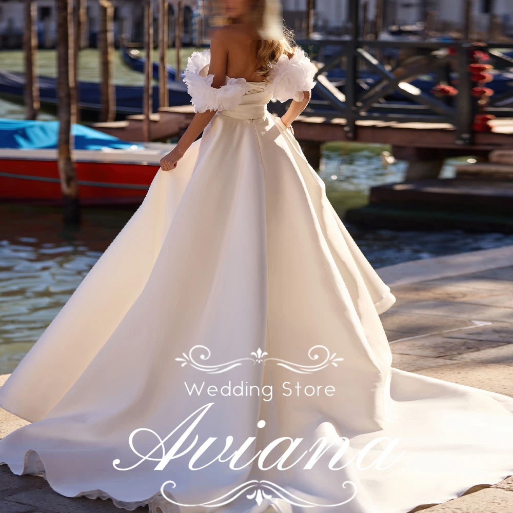 Aviana Customized A-Line Satin Pleats Ruching Off Shoulder Zipper Back Ruffles Lace lining Fairy Garden Wedding Dress Woman Sexy